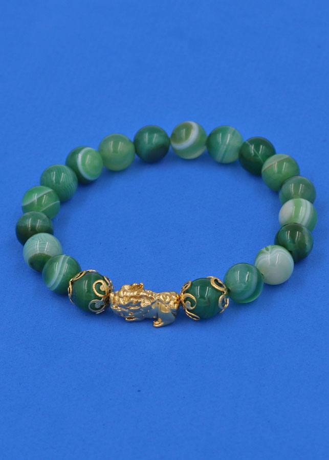 ✨Chuỗi đeo tay Thạch Anh Xanh Lá Sọc 8 ly - cẩn Tỳ Hưu Phong Thủy inox vàng VTAXLSTHHKV8 - hợp mệnh Hỏa, mệnh Mộc