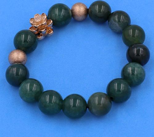 ✨Chuỗi tay Cẩm Thạch Xanh Đậm 12 ly mix hoa sen vàng hồng VCTXDHSHBH12 - Vòng tay hoa sen inox 304, không rỉ sét