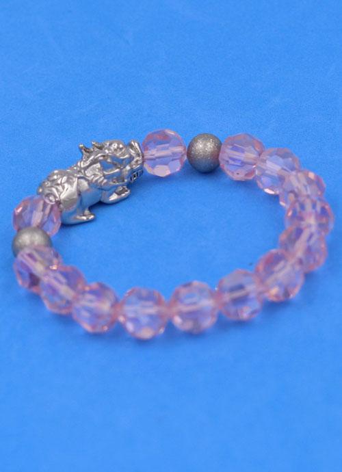 ✨Chuỗi tay pha lê cắt giác Hồng Phấn 10 ly Mix Tỳ Hưu Inox 2 Bi VFLGHPTHEHB10 - Chuỗi tay thời trang phong thủy