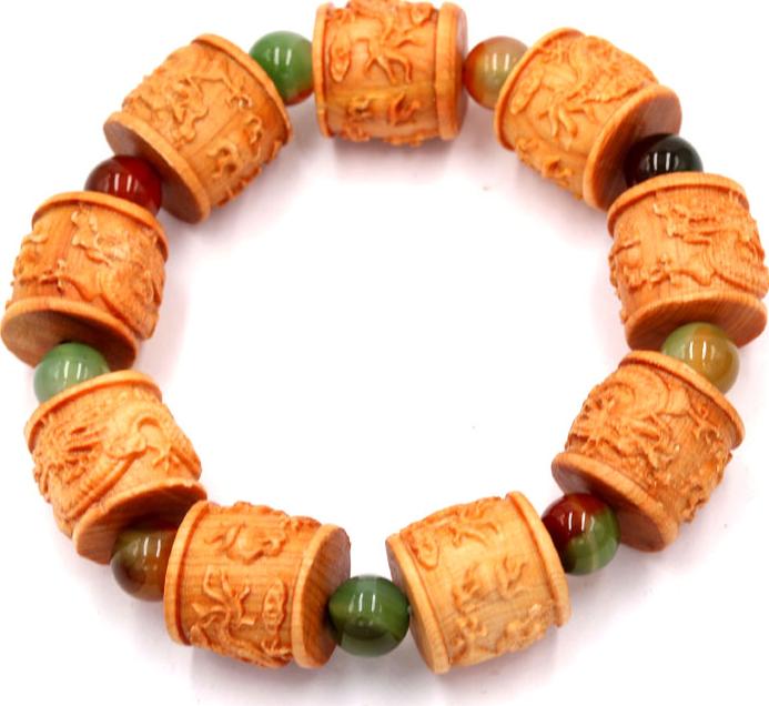 Kích thước : 9 hạt gỗ khắc hình trụ rồng 20mm x 20mm, đá thạch anh : 8 ly, vòng chuỗi dài 252mm