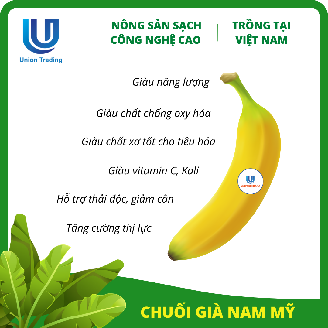 ✨Chuối Tươi Union Trading - Hộp 1Kg - Thơm Dẻo, Giàu Dinh Dưỡng - Trồng Công Nghệ Cao Tại Việt Nam