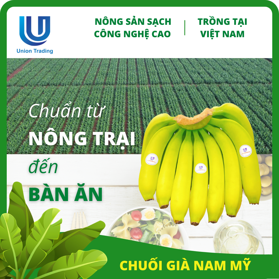Công ty TNHH TMDV Union Trading được thành lập năm 2017, trải qua hơn 5 năm nỗ lực phát triển nghiêm túc, đầu tư bài bản, đến nay công ty đã sở hữu nông trại chuối Cavendish (chuối già giống Nam Mỹ) cấy mô rộng 125 ha tại Hớn Quản, Bình Phước cùng mạng lưới nông trại hợp tác ở nhiều tỉnh thành Củ Chi, An Giang, Quảng Ngã với tổng diện tích lên đến 500 ha.
