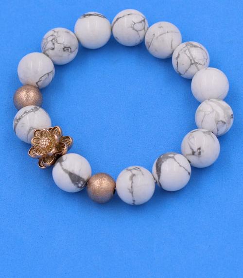✨Chuỗi vòng tay Đá Howlite 12 ly - Vòng tay Hoa Sen vàng hồng VHWLHSHBH12 - hợp mệnh Kim, mệnh Thủy