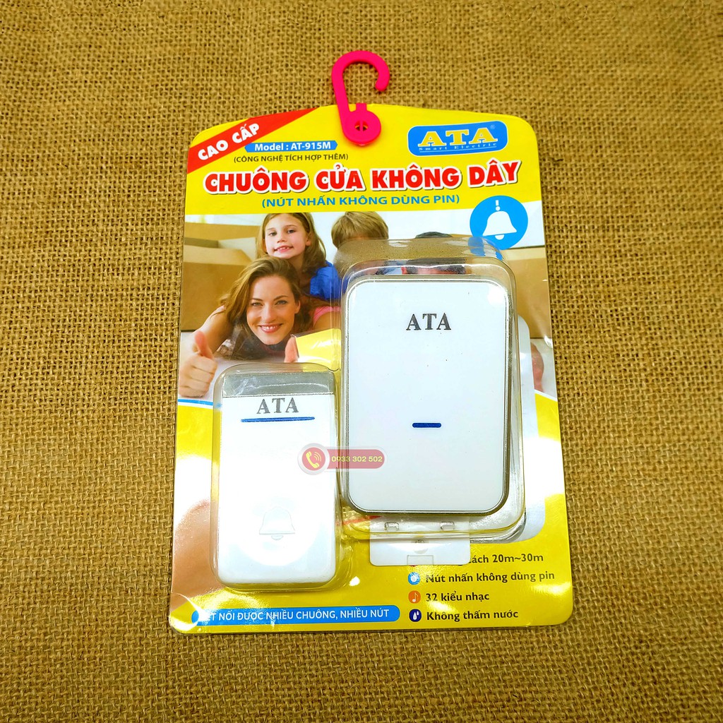 Giới thiệu hình ảnh về bộ chuông cửa không dây cao cấp nút nhấn không dùng pin ATA AT 915M