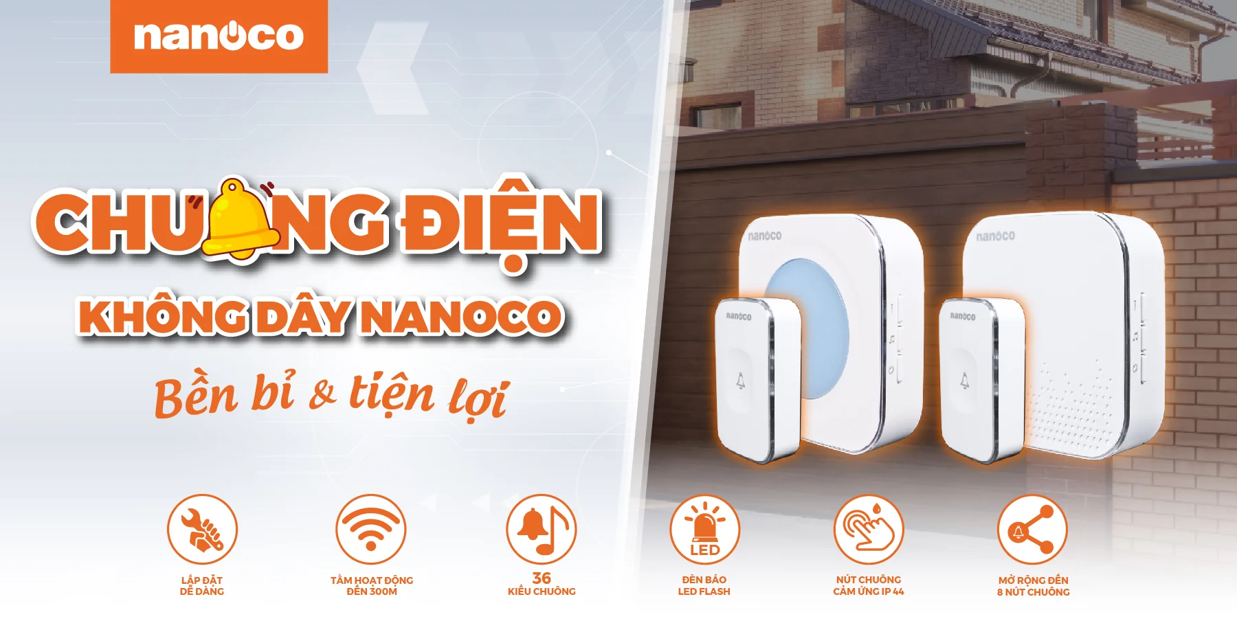 Chuông điện không dây Nanoco - bảo hành 24 tháng