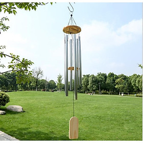 Chất liệu : giá treo gỗ và thanh nhôm - gồm 6 thanh kim loại nhôm Chiều dài đường kính treo 10cm, thanh chuông 30 đến 40 cm , chiều dài cả chuông 1m2 (có thể chỉnh