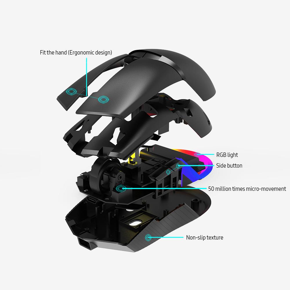 The Ajazz GTi modular gaming mouse equips with magnetic side modules, which just need to absorb in the mouse for more convenient mounting, for superior functions and more comfortable hand feeling. Features: Magnetic Side Module