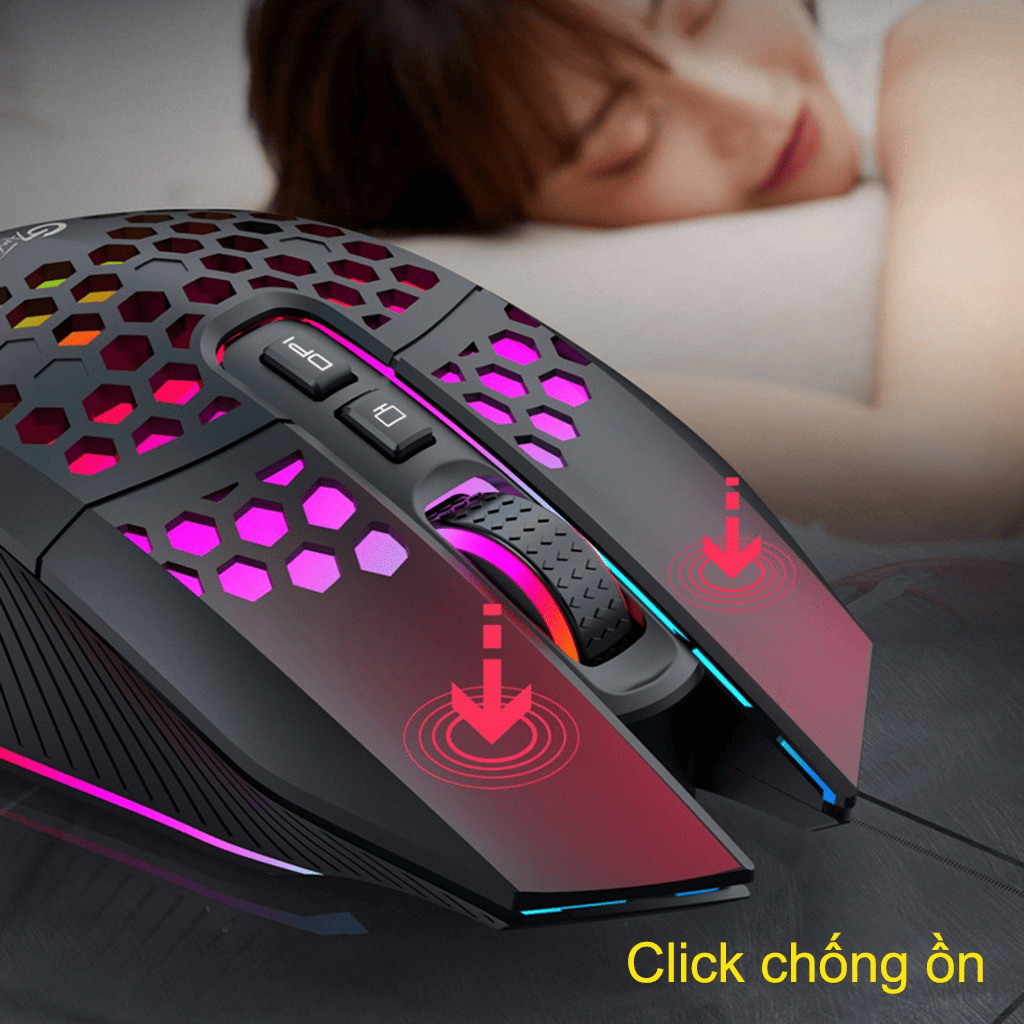 Chuột chơi Game có đèn nền Cổng kết nối: USB Kích thước: 113*63*38mm DPI: 800-1000-1200DPI Tuổi thọ switch: 3,000,000 lần nhấn Độ dài cáp kết nối: 1.5m