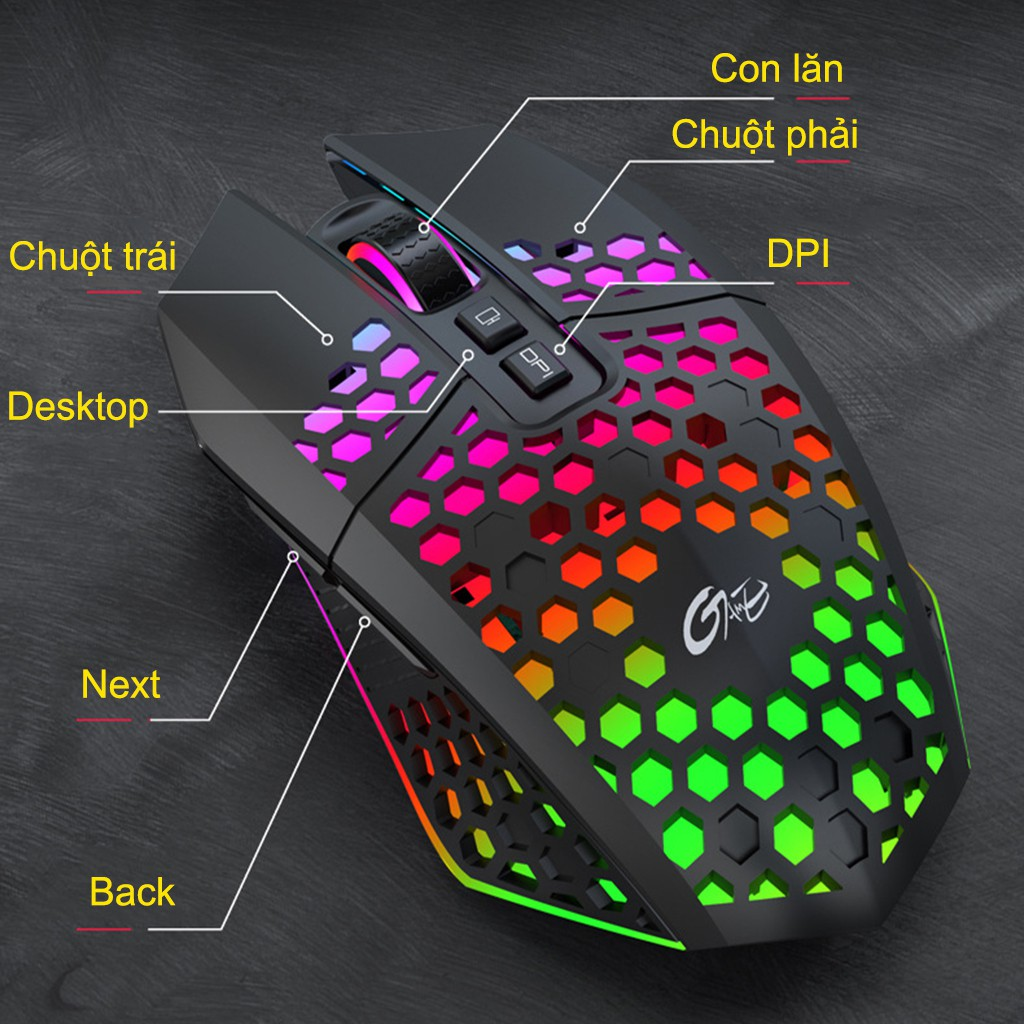 Chuột không dây chơi game PIXLINK X801 thiết kế độc lạ Led RGB đổi màu click chống ồn DPI 1600