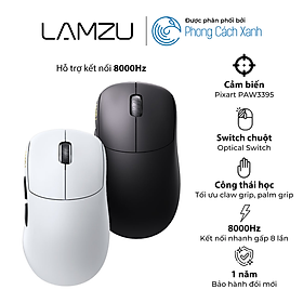Bảo hành: 12 tháng đổi mới *Lưu ý: Quý khách vui lòng giữ hộp và phụ kiện của sản phẩm để Phong Cách Xanh hỗ trợ bảo hành Chuột không dây siêu nhẹ Lamzu Thorn - Hỗ trợ 8KHz