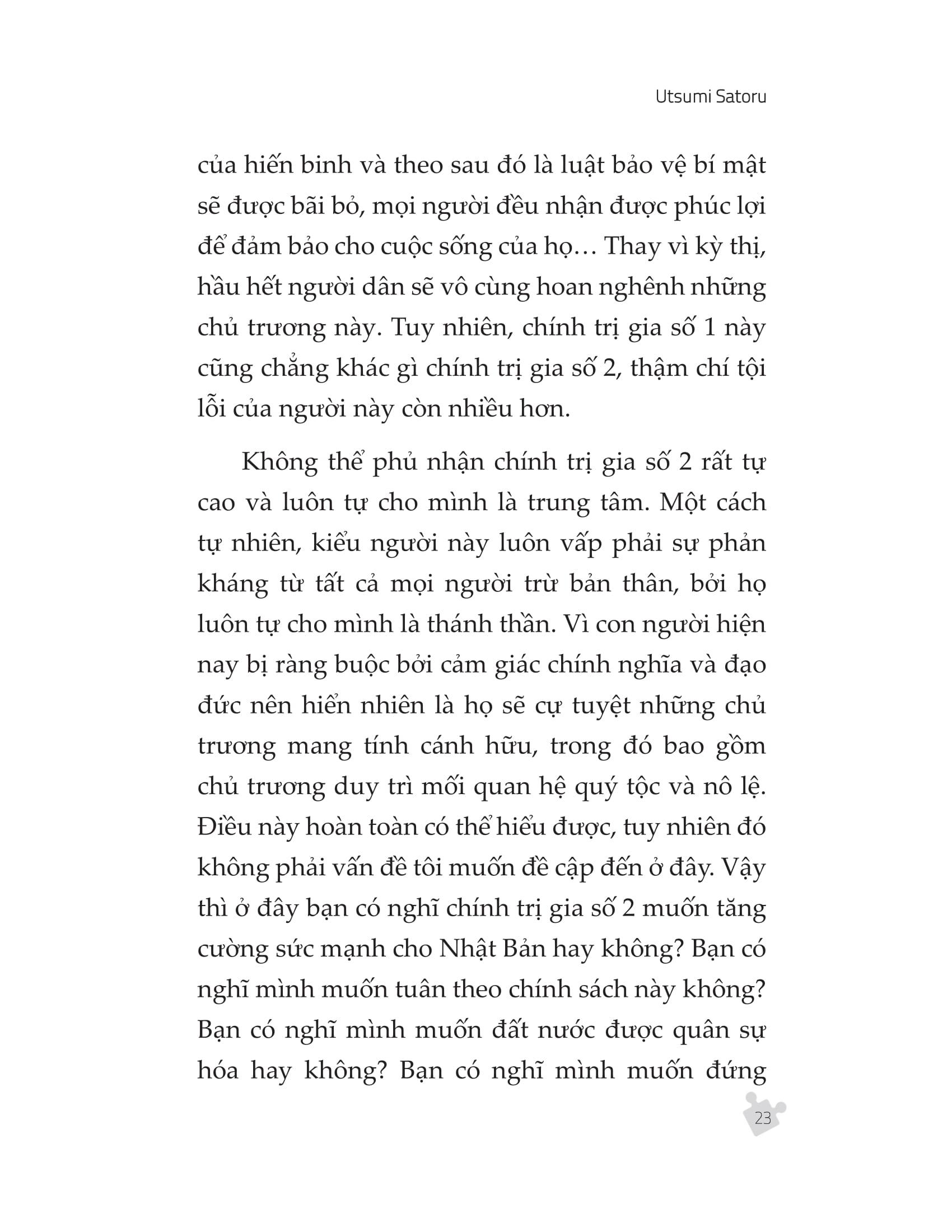 - Phần ứng dụng: từ chương 11 đến chương 18: Bàn về tác động của các quy luật tuyệt đối của tâm trí đến các lĩnh vực gần gũi trong cuộc sống như y học, kinh doanh, làm cha mẹ… từ đó rút ra những nhận định đáng giá về khả năng chuyển hóa tâm thức thông qua các quy luật tuyệt đối của tâm trí. Nội dung cuốn sách bàn về những nguồn cơ gây ra các cảm xúc tiêu cực khác nhau, mong muốn kiểm soát chúng của mỗi chúng ta thông qua hành vi phản ứng, phụ thuộc thậm chí là tâm lý giả làm nạn nhân. Qua đó tác giả sẽ cho chúng ta biết tại sao chúng ta lại có những cảm xúc tiêu cực như thế, và chúng ảnh hưởng như thế nào đến cơ thể, tạo ra bệnh tật và gây bối rối trong đời sống công việc lẫn cá nhân của chúng ta. Ngoài ra, ông cũng truy nguyên những tiêu cực này về các quy luật tuyệt đối của tâm trí, hướng dẫn chúng ta cách đối phó với những sự thật đã tạo ra vấn đề để tìm về một cuộc sống an lạc và hạnh phúc. Điểm mới mẻ trong cuốn sách này là tác giả tiếp cận vấn đề theo hướng quy nạp, đi từ kết quả, phân tích kết quả và tìm ra nguyên nhân. Từ đó, biết cách trang bị cho mình những “biện pháp” phòng bị dựa trên trải nghiệm. Với lối viết ngắn gọn và súc tích, Utsumi Satoru sẽ cung cấp cho độc giả những bí kíp thay đổi thái độ, chuyển hóa tâm thức thực sự hữu ích để có thể sắp xếp cuộc sống một cách tốt nhất.