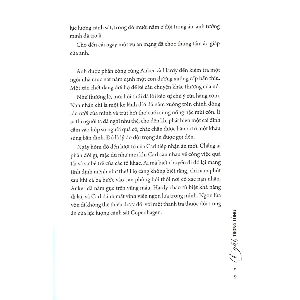 Carl Mørck từng là một thanh tra hình sự năng nổ, một điều tra viên án mạng xuất sắc tại Copenhagen. Trong một lần khảo sát hiện trường, ông bị đạn sượt qua đầu, hai đồng đội của ông một bị bắn chết, một bị liệt toàn thân. Mặc cảm vì đã không rút súng bắn trả khiến Carl Mørck cảm thấy chán nản, nhụt chí. Ông trở thành một con người cộc cằn, cay độc và bất hợp tác với các cảnh sát khác.