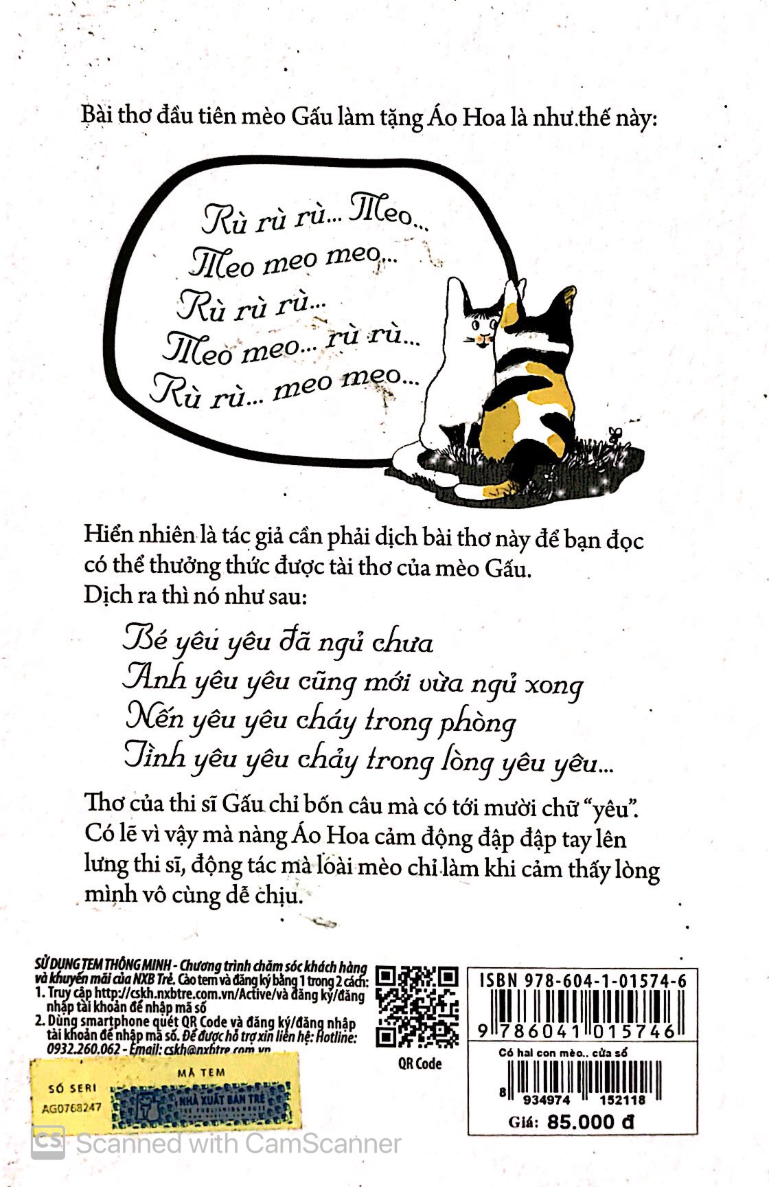 Cuốn truyện mỏng mảnh vừa phải, hình vẽ của họa sĩ Hoàng Tường sinh động đến từng nét nũng nịu hay kiêu căng của nàng mèo người yêu mèo Gấu, câu chuyện thì hấp dẫn duyên dáng điểm những bài thơ tình lãng mạn nao lòng song đọc to lên thì khiến cười hinh hích…