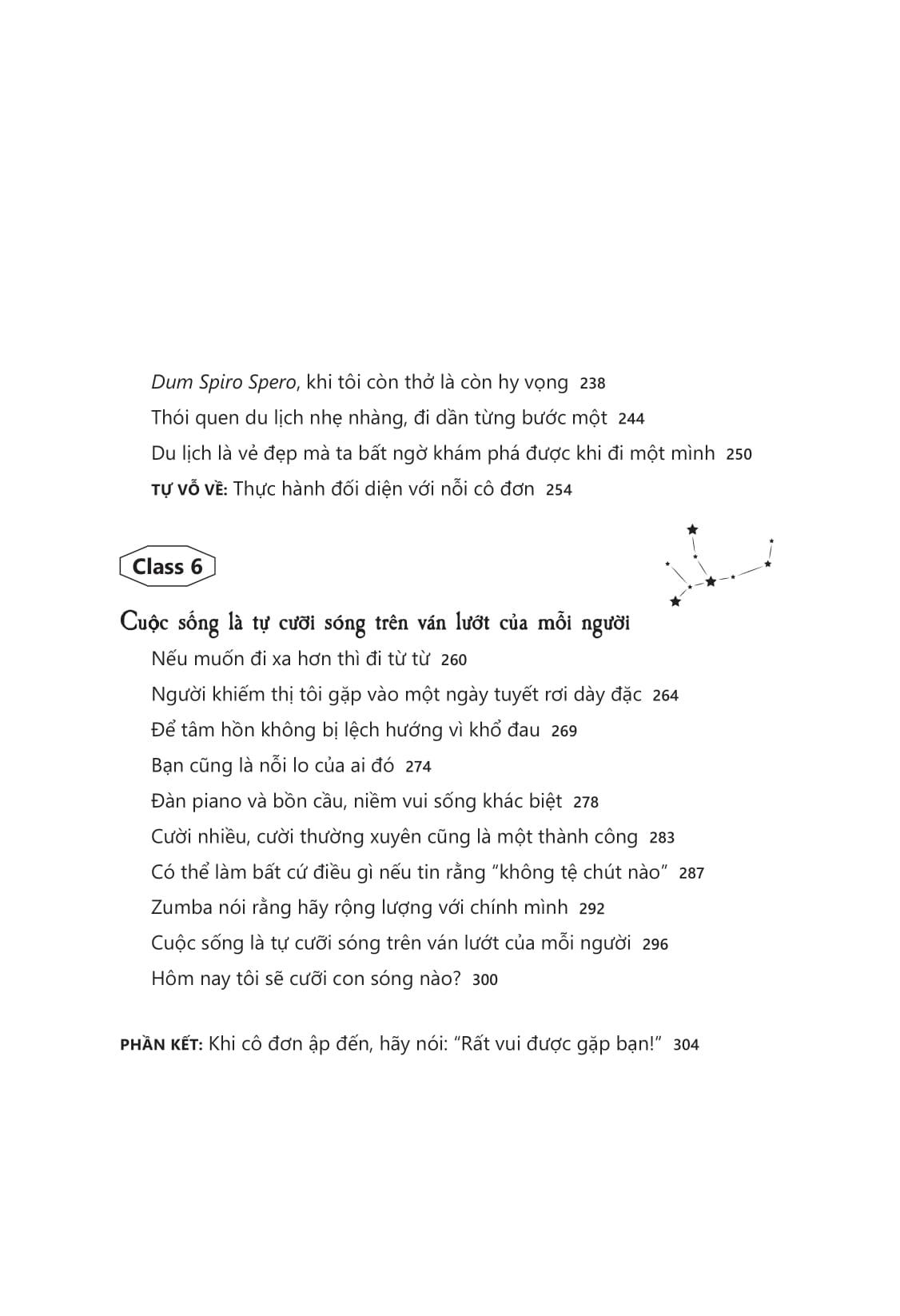 Cuốn sách này là "lớp học cô đơn" dành cho bạn, là lời an ủi cũng là lời nhắc nhở: đã đến lúc phải đối diện với con người thật của chính m.ình!