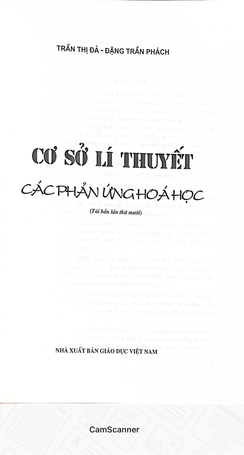 Hoá học ngày nay đang ở vào thời kì phát triển mạnh mẽ. Các vấn đề lí thuyết được hoàn thiện, mở rộng và đổi mới. Các thành tựu trong nghiên cứu và trong sản xuất ngày càng đa dạng, phong phú. Các phương pháp thực nghiệm ngày càng tinh vi và hữu hiệu đã làm cho kho tàng kiến thức hoá học ngày càng đồ sộ hơn. Trước bối cảnh đó, cả người học, người dạy và người nghiên cứu càng phải nắm vững cơ sở lí thuyết của những biến đổi hoá học, trước hết là của các phản ứng hoá học. Cuốn sách này nhằm cung cấp những kiến thức về : Cơ sở của Nhiệt động lực học hoá học. Cơ sở của Động hoá học. Mối liên hệ giữa thành phần, cấu tạo và tính chất của chất tan, dung môi và dung dịch, đặc biệt là những hiểu biết mới về dung môi lỏng và sự sonuat hoá. Lí thuyết axit - bazơ và phản ứng axit - bazơ, đặc biệt là việc phân biệt lực axit - bazơ trong nước và trong dung môi khác với nước. Độ axit trong và ngoài phạm vi thang pH. Phản ứng oxi hoá - khử, cơ chế phản ứng, lực oxi hoá - khử, đặc biệt là những ứng dụng của phản ứng oxi hoá - khử trong công nghiệp hoá chất, trong lĩnh vực môi trường và trong cuộc sống thường ngày. Các nội dung trên được viết ở hai mức độ khác nhau : mức độ cơ bản và mức độ nâng cao. Các mục có ghi dấu * là những kiến thức nâng cao, mở rộng và đi sâu vào cơ sở lí thuyết các phản ứng hoá học. Bằng việc kết hợp hai yêu cầu cơ bản và nâng cao, chúng tôi hi vọng rằng cuốn sách này không những là giáo trình giảng dạy cho sinh viên các ngành có học môn Hoá học mà còn đối với cả sinh viên các năm cuối và học viên cao học các trường Đại học và Cao đẳng thuộc chuyên ngành Hoá học. Đồng thời cuốn sách còn là tài liệu tham khảo cho giáo viên Trung học phổ thông, giảng viên hoá học các trường Đại học, Cao đẳng và các cán bộ nghiên cứu hoá học.