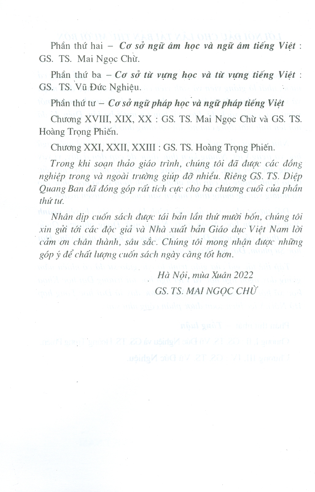 ✨Cơ Sở Ngôn Ngữ Học Và Tiếng Việt (Tái bản lần thứ mười lăm) - Mai Ngọc Chừ; Vũ Đức Nghiệu; Hoàng Trọng Phiến