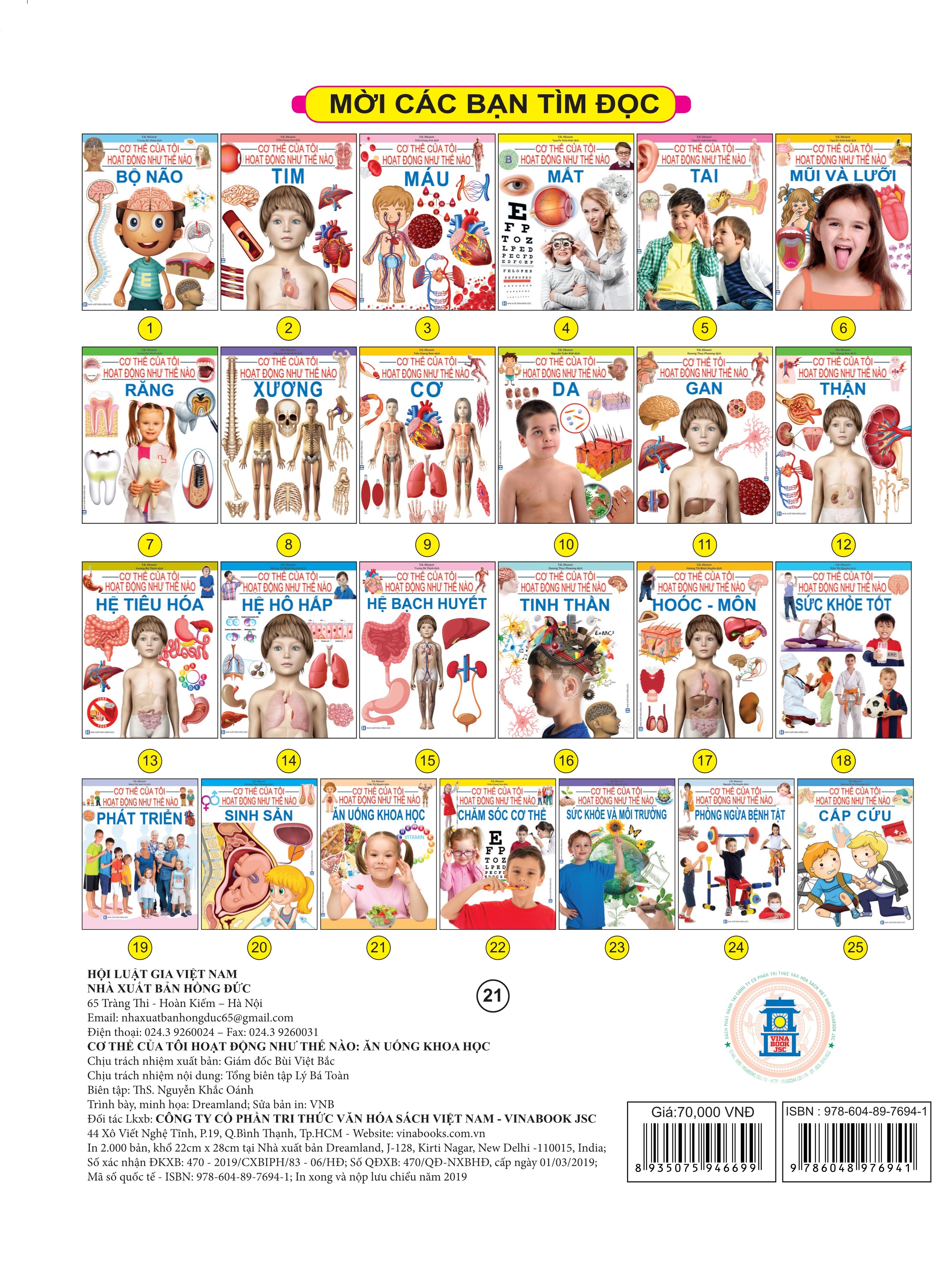 Mua tại TiktokĂN UỐNG KHOA HỌC là một trong 25 tên sách của bộ sách “CƠ THỂ CỦA TÔI HOẠT ĐỘNG NHƯ THẾ NÀO”, nội dung của bộ sách trình bày chi tiết về cấu trúc, chức năng cũng như vẻ đẹp của cơ thể người cùng các phương pháp tự chăm sóc, bảo vệ sức khỏe của các em học sinh.