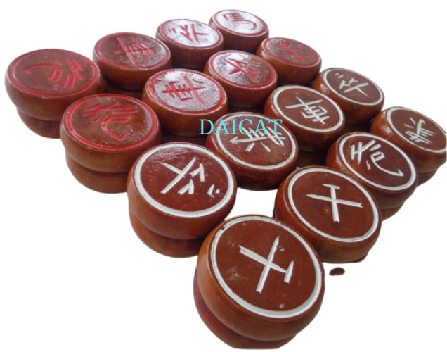 Bộ cờ tướng gỗ nhãn này bao gồm 32 quân cờ, trong đó có 16 quân chữ mầu trắng và 16 quân chữ mầu đỏ. Sự tương phản màu sắc tạo nên một bàn cờ đẹp mắt và độc đáo.