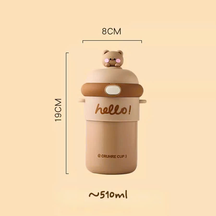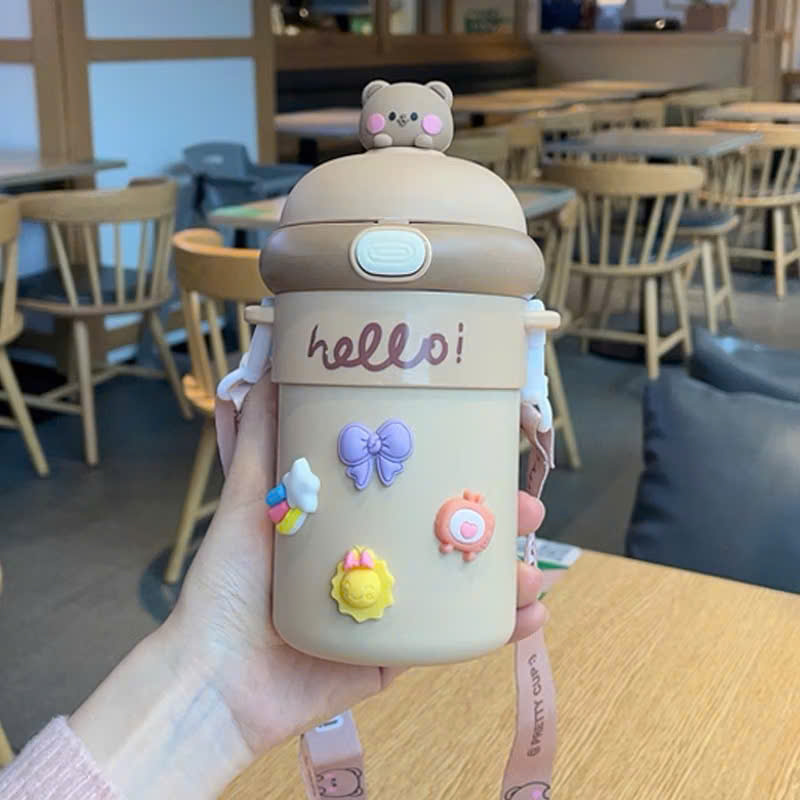Cốc Giữ Nhiệt Trẻ Em 510ml Có Ống Hút – Cốc Đeo Chéo Hoạt Hình Dễ Thương Cho Bé Gái, Bình Nước Uống Tiện Lợi
