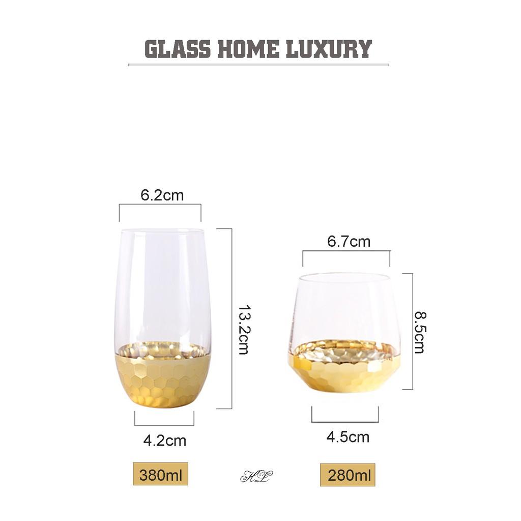 ✨Cốc thủy tinh borosilicate chịu nhiệt Home Decor Cao Cấp | LY TT CHỊU NHIỆT DÁNG BẦU VÂN TỔ ONG NHÚNG VÀNG KIM