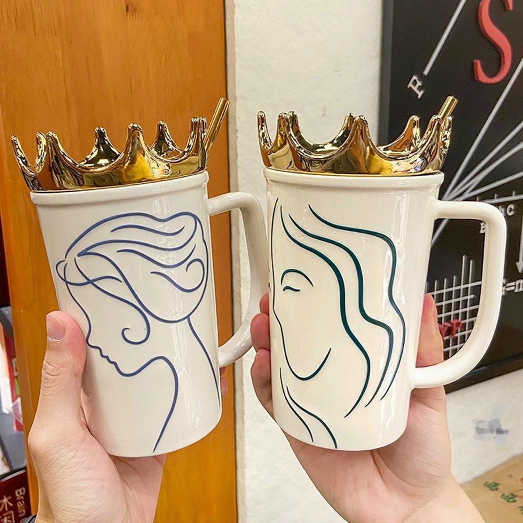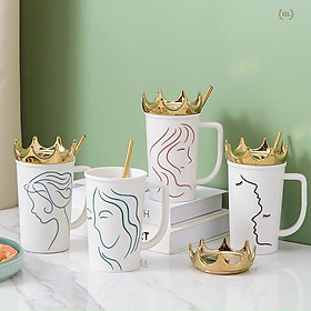 Mua tại TiktokCa sứ kèm ống hút inox vàng kim | Cốc sứ Hot Trend 2022 | Ca sứ có nắm đậy kèm ống hút Size To nắp Queen vương miệng