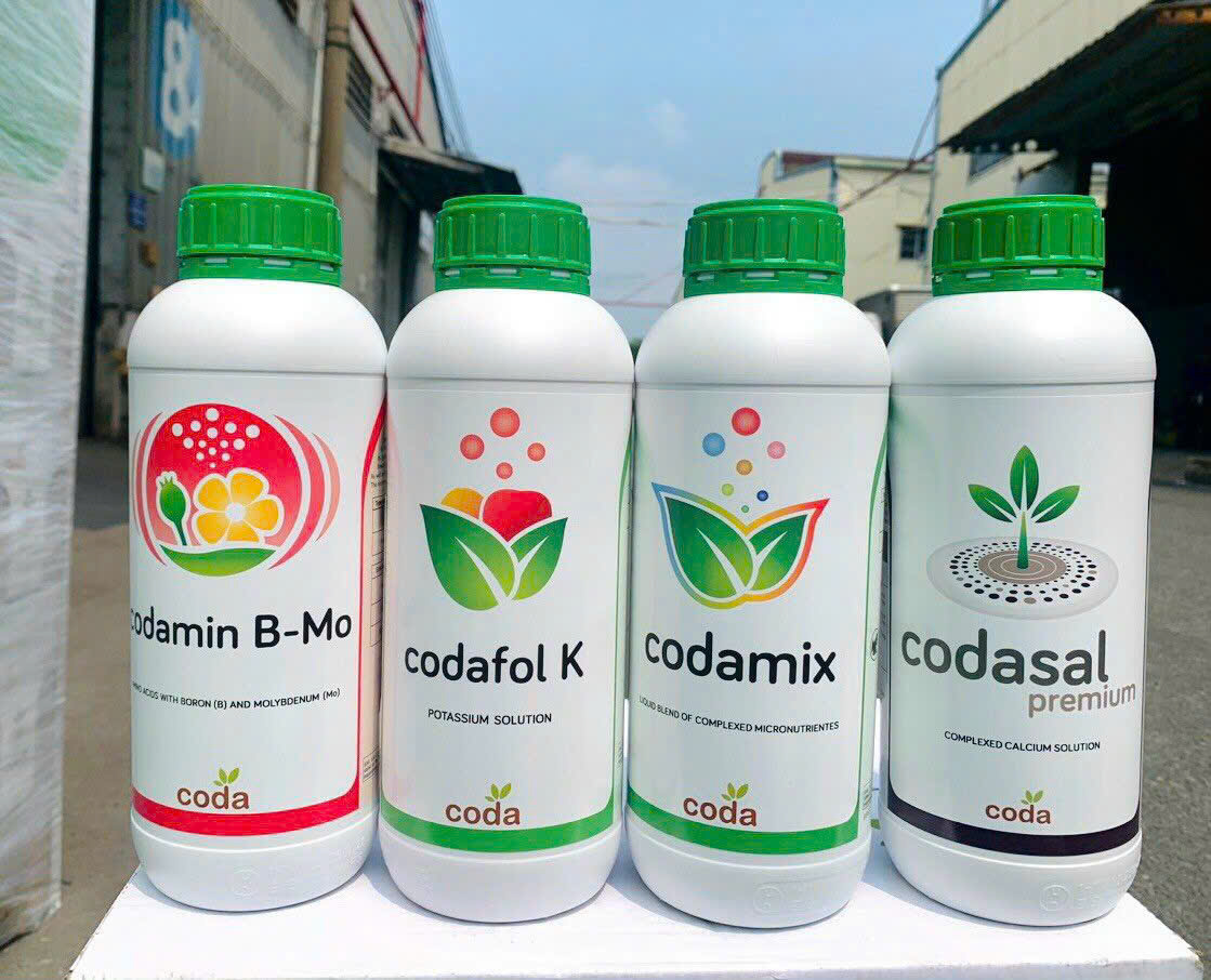 4. Phân bón lá Codafol K *Thành phần định lượng: - K2O: 24 % w/w * Đối tượng sử dụng: - Cây ăn trái: sầu riêng, thanh long, cam, quýt, chôm chôm, sapoche, xoài, nhãn…