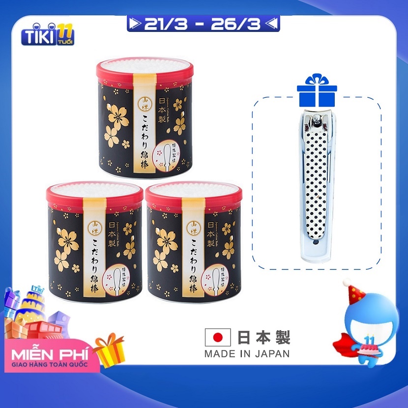 ✨Combo 03 hộp tăm bông lấy ráy tai 180P hàng cao cấp nội địa Nhật Bản (Made in Japan) tặng bấm móng tay trẻ em 8.5cm (giao màu ngẫu nhiên)