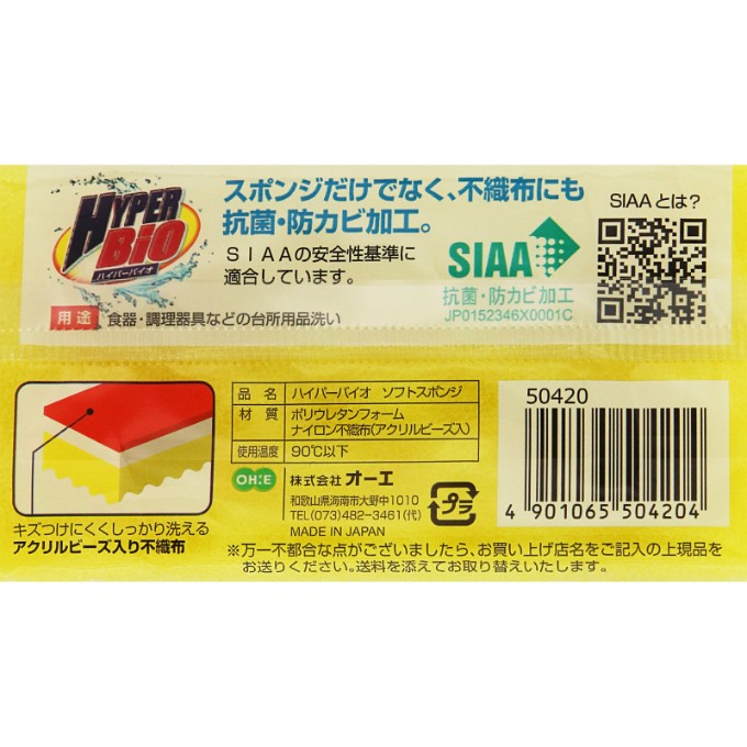 MÚT RỬA CHÉN BÁT OHE KHÁNG KHUẨN & KHỬ MÙI OHE HYPER BIO MADE IN JAPAN Xuất xứ: Nhật Bản/ Made in Japan Sản phẩm được thiết kế từ miếng mút có tính lọc cao