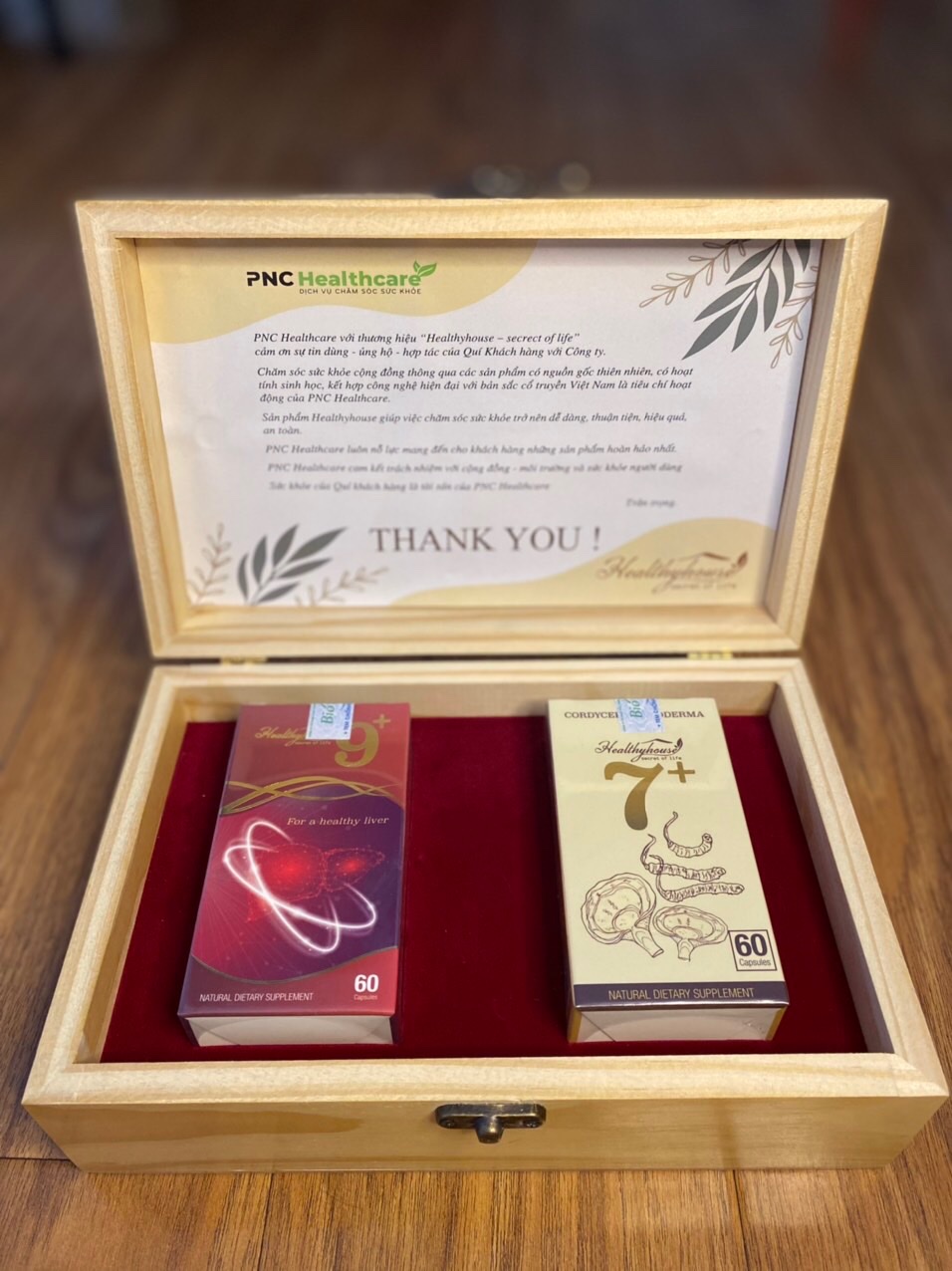 Combo 1 hộp Đông Trùng Linh Chi 7+ Hỗ Trợ Tăng Đề Kháng, Giảm Mệt Mỏi và 1 Hộp Viên Uống 9+ Tốt Gan Khỏe Người, Hộp 60 Viên Quà tặng Hộp gỗ + Túi