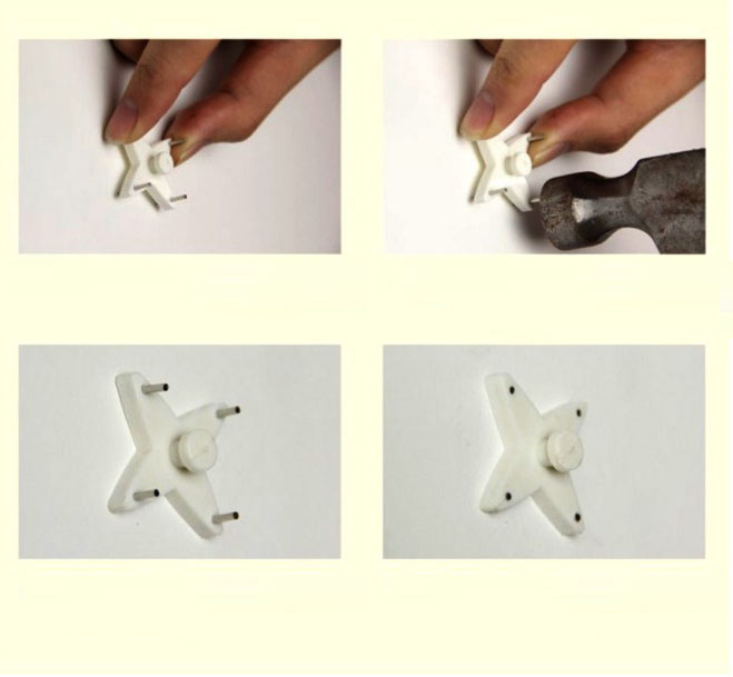 Móc treo gắn tường bằng cách đóng thẳng đinh ghim thép vào tường tiện lợi không cần khoan, con gái cũng có thể dễ dàng làm đượ