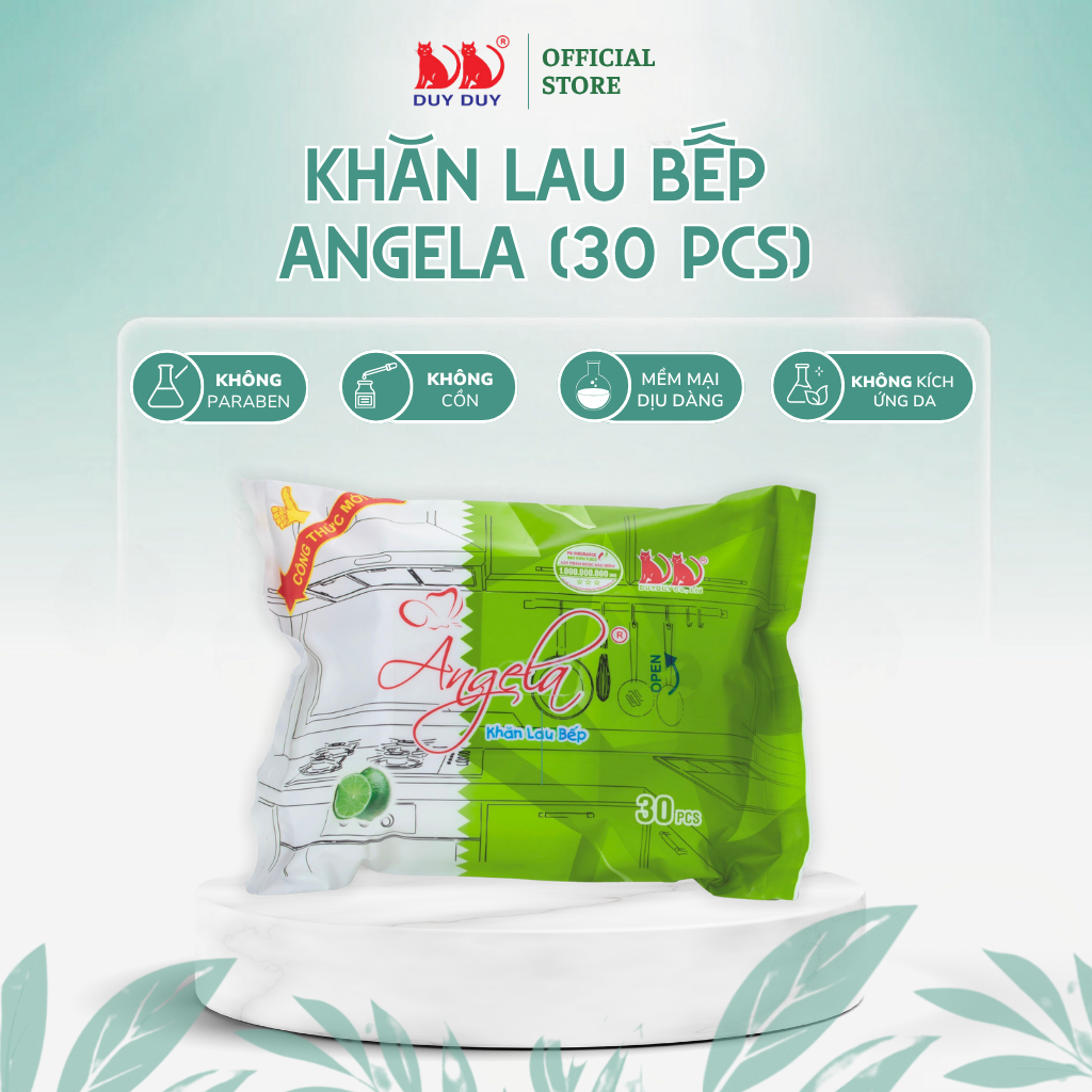 Mua tại TiktokCombo Khăn lau bếp Angela vải bi 30 tờ (24x31cm) hương chanh diệt khuẩn và khử mùi tối đa Khăn lau bếp Angela 30 tờ là trợ thủ đắc lực cho gian bếp hiện đại, giúp bạn vệ sinh nhanh chóng các bề mặt như bếp ga, bếp từ, kệ bếp, lò vi sóng, máy hút mùi và các thiết bị nhà bếp khác. Với công dụng làm sạch chuyên dụng, khăn dễ dàng loại bỏ dầu mỡ, vết bẩn cứng đầu, mùi thức ăn và vi khuẩn chỉ trong vài thao tác. Thành phần: vải không dệt rayon Mùi hương: Hương phấn dịu nhẹ Kích thước mặt giấy: ( 24x31cm) Quy cách lẻ: 10 gói / thùng Kích thước đóng gói: 38x23x23cm Cân nặng :7000gr Hạn sử dụng: 02 năm kể từ ngày sản xuất Xuất xứ: Việt Nam Số ĐKCL : 07:2011/CTY-DD
