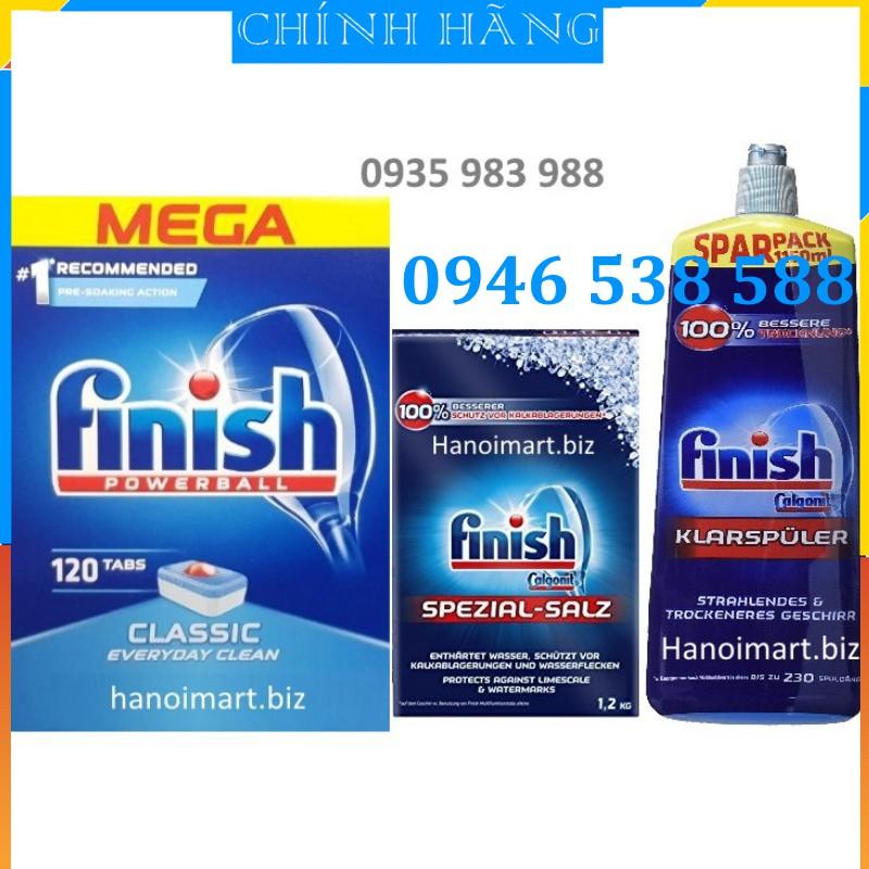 Combo: Viên rửa Finish Classic 120 viên + Muối rửa bát chén Finish 1.2kg + Nước làm bóng Finish 1150ml