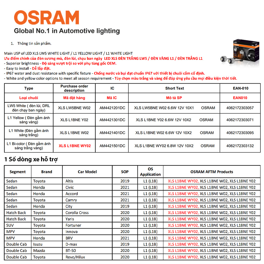 Combo 2 Bóng Đèn Led Gầm XLS OSRAM L1/L1B 12V 6.6W chế tạo bằng chất liệu cao cấp đạt tuổi thọ sử dụng cao giúp hỗ trợ chiếu sáng hiệu quả trên những chặng đường dài