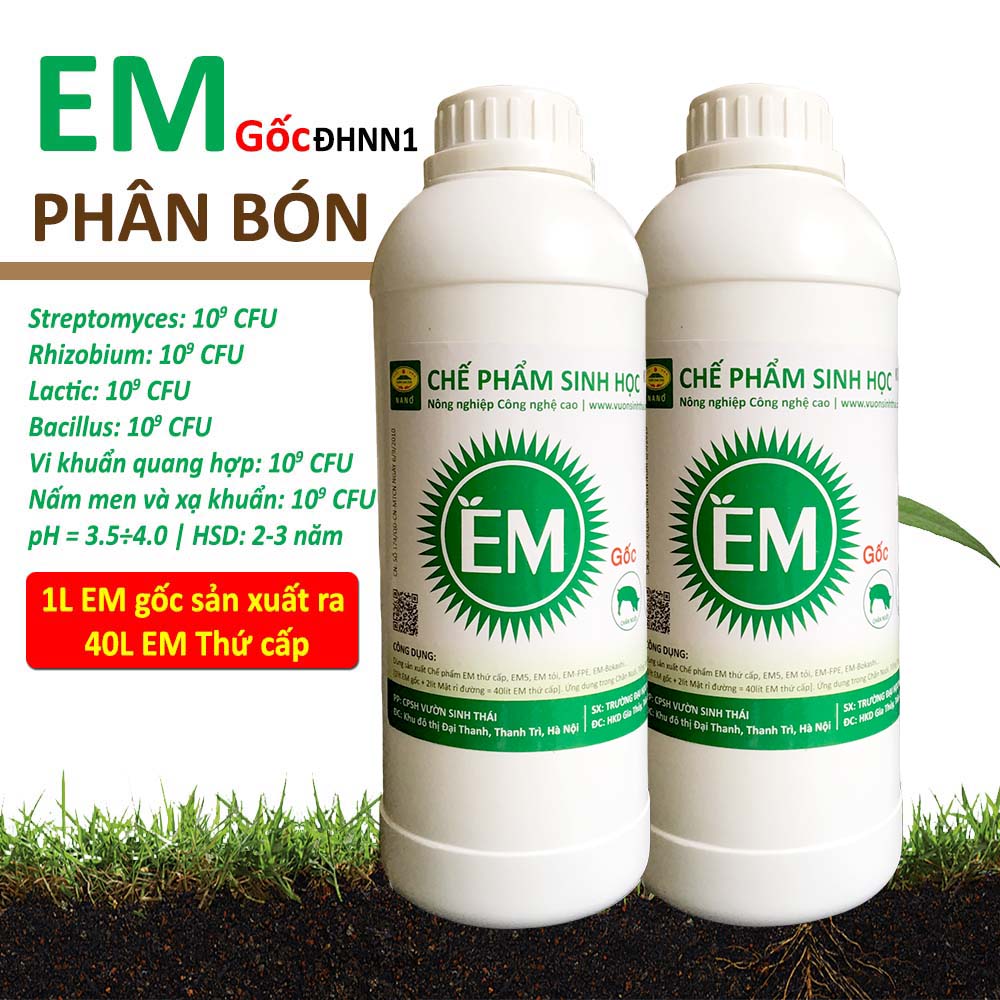 Chế phẩm EM của trường đại học nông nghiệp 1 Hà Nội là đề tài nghiên cứu khoa học, do các chuyên gia đầu nghành sáng chế. Chế phẩm được bổ sung thêm nhiều chủng sinh vật hữu ích khác như: Bacilluss, Rhodobacteria rất phù hợp với đặc thù canh tác Nông nghiệp Việt Nam.