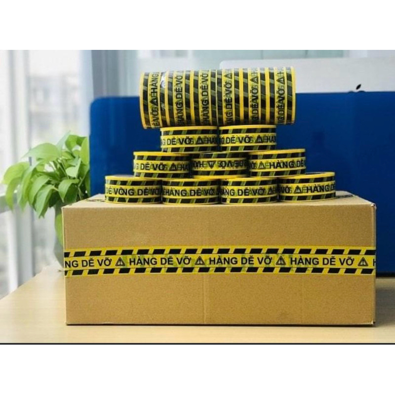 - Băng keo "HÀNG DỄ VỠ" nền vàng nổi bật đóng gói hàng niêm phong rất rõ. Độ dày màng 55mic: độ dính tốt, dẻo dai không đứt. Hàng dễ vỡ nền vàng, chữ đen