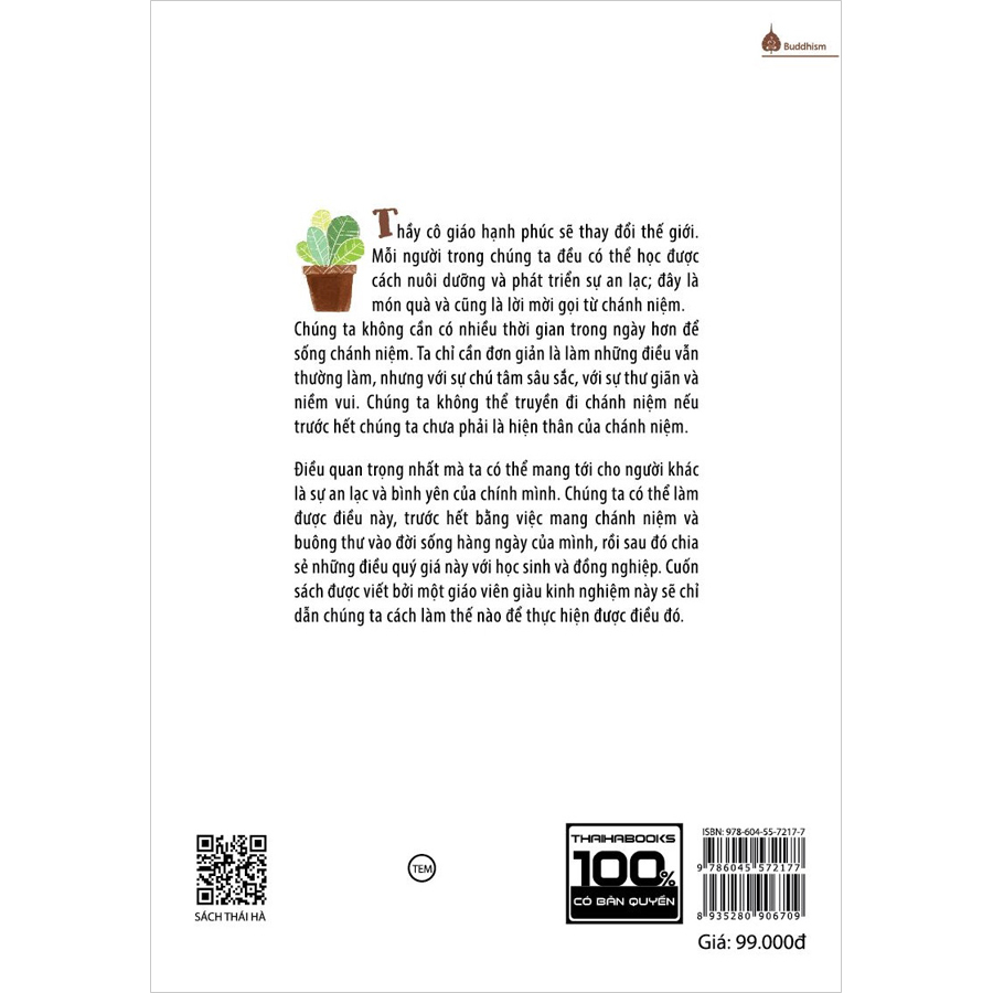 Thầy cô giáo hạnh phúc sẽ thay đổi thế giới. Mỗi người trong chúng ta đều có thể học được cách nuôi dưỡng và phát triển sự an lạc; đây là món quà và cũng là lời mời gọi từ chánh niệm. Chúng ta không cần có nhiều thời gian trong ngày hơn để sống chánh niệm. Ta chỉ cần đơn giản là làm những điều vẫn thường làm, nhưng với sự chú tâm sâu sắc, với sự thư giãn và niềm vui. Chúng ta không thể truyền đi chánh niệm nếu nếu trước hết chúng ta chưa phải là hiện thân của chánh niệm.