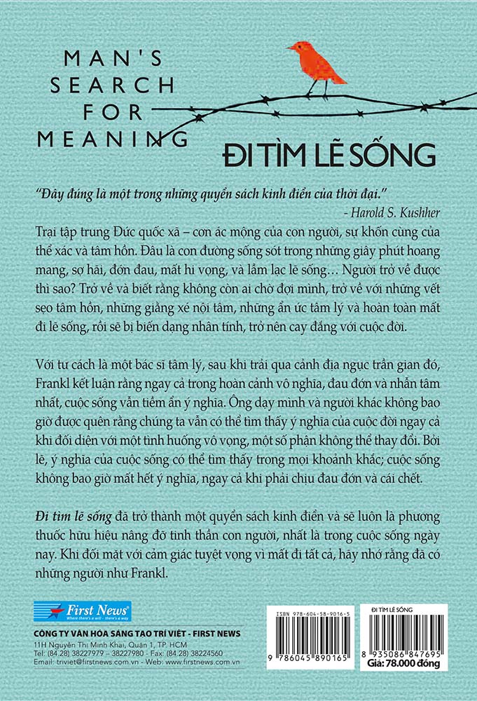 Đi tìm lẽ sống của Viktor Frankl là một trong những quyển sách kinh điển của thời đại. Thông thường, nếu một quyển sách chỉ có một đoạn văn, một ý tưởng có sức mạnh thay đổi cuộc sống của một người, thì chỉ riêng điều đó cũng đã đủ để chúng ta đọc đi đọc lại và dành cho nó một chỗ trên kệ sách của mình. Quyển sách này có nhiều đoạn văn như thế. Trước hết, đây là quyển sách viết về sự sinh tồn. Giống như nhiều người Do Thái sinh sống tại Đức và Đông Âu khi ấy, vốn nghĩ rằng mình sẽ được an toàn trong những năm 1930, Frankl đã trải qua khoảng thời gian chịu nhiều nghiệt ngã trong trại tập trung và trại hủy diệt của Đức quốc xã. Điều kỳ diệu là ông đã sống sót, cụm từ “thép đã tôi thế đấy” có thể lột tả chính xác trường hợp này. Nhưng trong Đi tìm lẽ sống, tác giả ít đề cập đến những khó nhọc, đau thương, mất mát mà ông đã trải qua, thay vào đó ông viết về những nguồn sức mạnh đã giúp ông tồn tại. Ông chua xót kể về những tù nhân đã đầu hàng cuộc sống, mất hết hy vọng ở tương lai và chắc hẳn là những người đầu tiên sẽ chết. Ít người chết vì thiếu thức ăn và thuốc men, mà phần lớn họ chết vì thiếu hy vọng, thiếu một lẽ sống. Ngược lại, Frankl đã nuôi giữ hy vọng để giữ cho mình sống sót bằng cách nghĩ về người vợ của mình và trông chờ ngày gặp lại nàng. Ông còn mơ ước sau chiến tranh sẽ được thuyết giảng về các bài học tâm lý ông đã học được từ trại tập trung Auschwitz. Rõ ràng có nhiều tù nhân khao khát được sống đã chết, một số chết vì bệnh, một số chết vì bị hỏa thiêu. Trong tập sách này, Frankl tập trung lý giải nguyên nhân vì sao có những người đã sống sót trong trại tập trung của phát xít Đức hơn là đưa ra lời giải thích cho câu hỏi vì sao phần lớn trong số họ đã không bao giờ trở về nữa.Nhiệm vụ lớn lao nhất của mỗi người là tìm ra ý nghĩa trong cuộc sống của mình. Frankl đã nhìn thấy ba nguồn ý nghĩa cơ bản của đời người: thành tựu trong công việc, sự quan tâm chăm sóc đối với những người thân yêu và lòng can đảm khi đối mặt với những thời khắc gay go của cuộc sống. Đau khổ tự bản thân nó không có ý nghĩa gì cả, chính cách phản ứng của chúng ta mới khoác lên cho chúng ý nghĩa. Frankl đã viết rằng một người “có thể giữ vững lòng quả cảm, phẩm giá và sự bao dung, hoặc người ấy có thể quên mất phẩm giá của con người và tự đặt mình ngang hàng loài cầm thú trong cuộc đấu tranh khắc nghiệt để sinh tồn”. Ông thừa nhận rằng chỉ có một số ít tù nhân của Đức quốc xã là có thể giữ được những phẩm chất ấy, nhưng “chỉ cần một ví dụ như thế cũng đủ chứng minh rằng sức mạnh bên trong của con người có thể đưa người ấy vượt lên số phận nghiệt ngã của mình” .