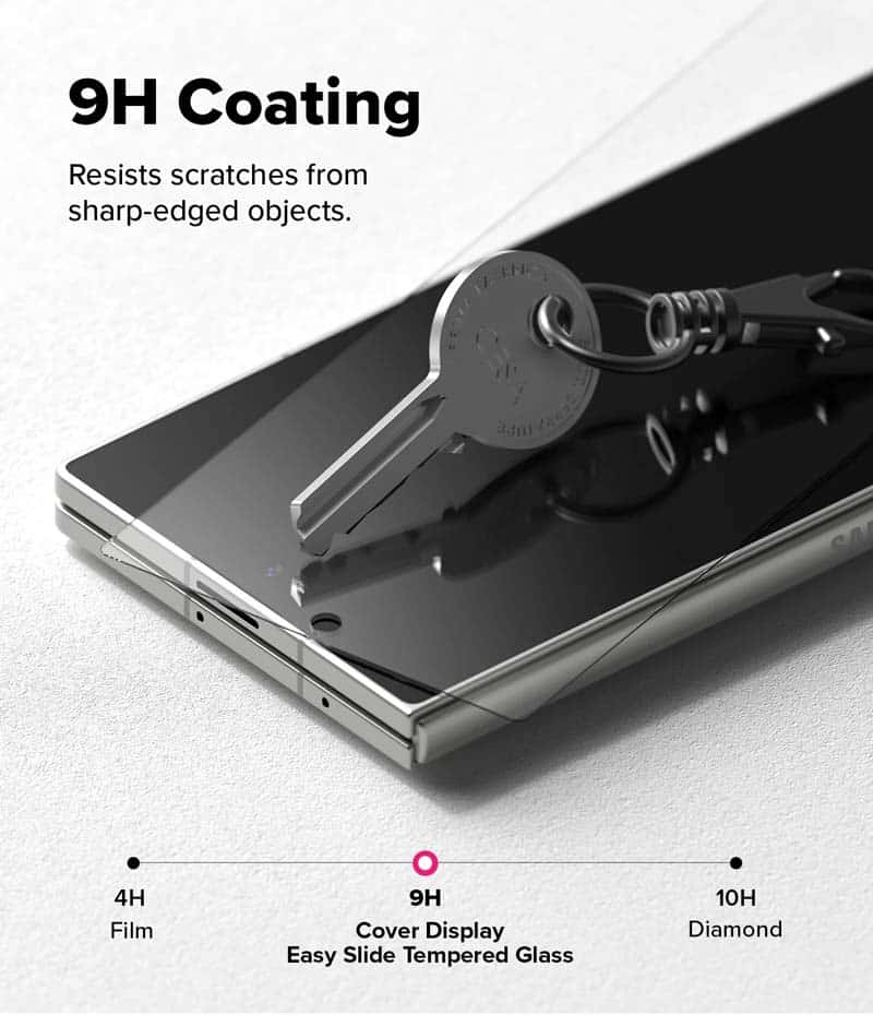[Combo 2] Dán cường lực Samsung Galaxy Z Fold 7 RINGKE Cover Display Easy Slide Tempered Glass (Màn hình ngoài) có kèm bộ khung dán giúp bạn dễ dàng thao tác tại nhà. Dán cường lực với độ cứng 9H chống trầy xước tốt, cảm ứng nhạy và chính xác, mang lại trải nghiệm chất lượng hình ảnh HD sống động nhờ độ nét cao.