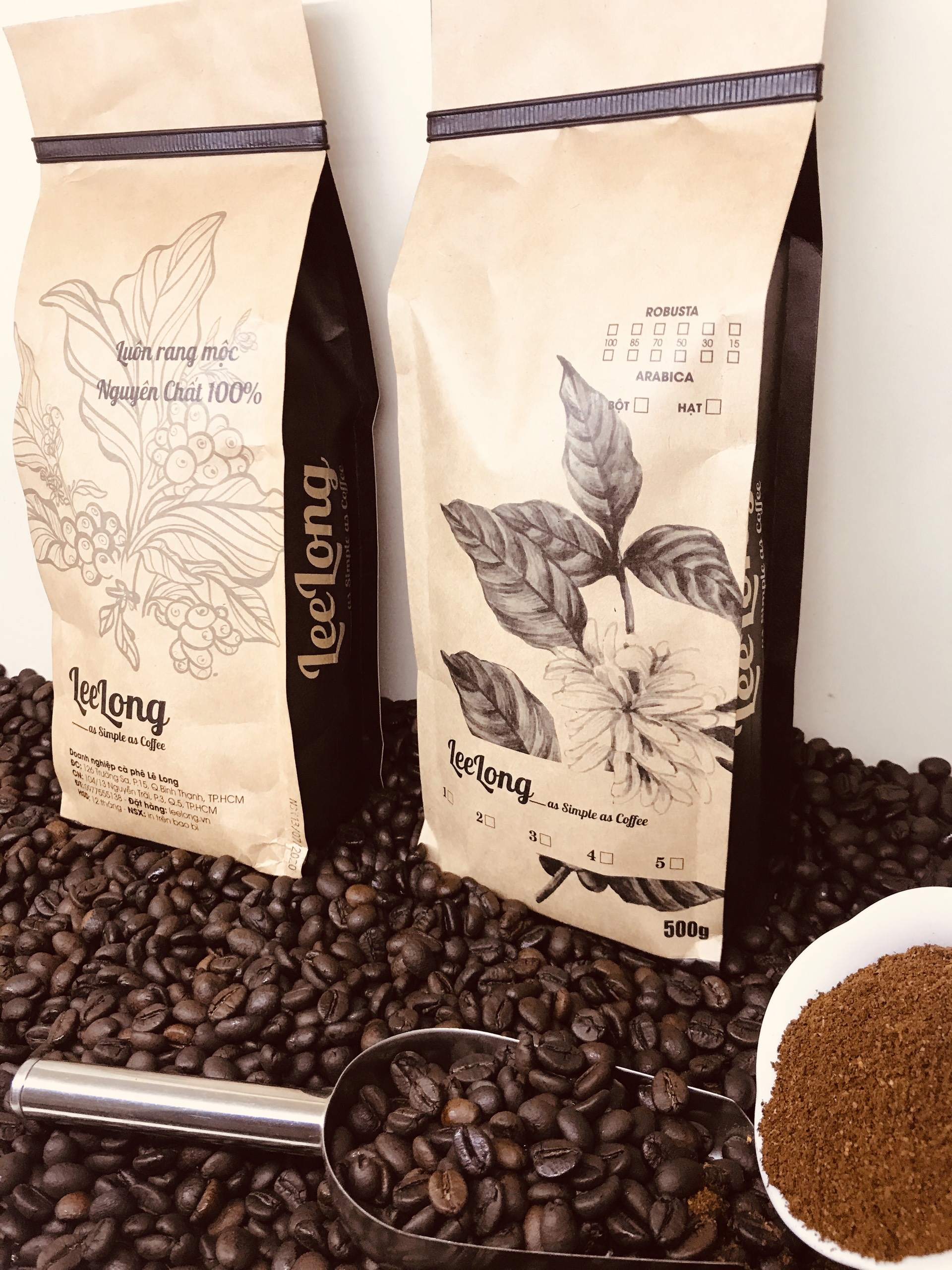 ✨Combo 2 gói 500g cafe LeeLong4 gu nhẹ (30 Robusta / 70 Arabica)