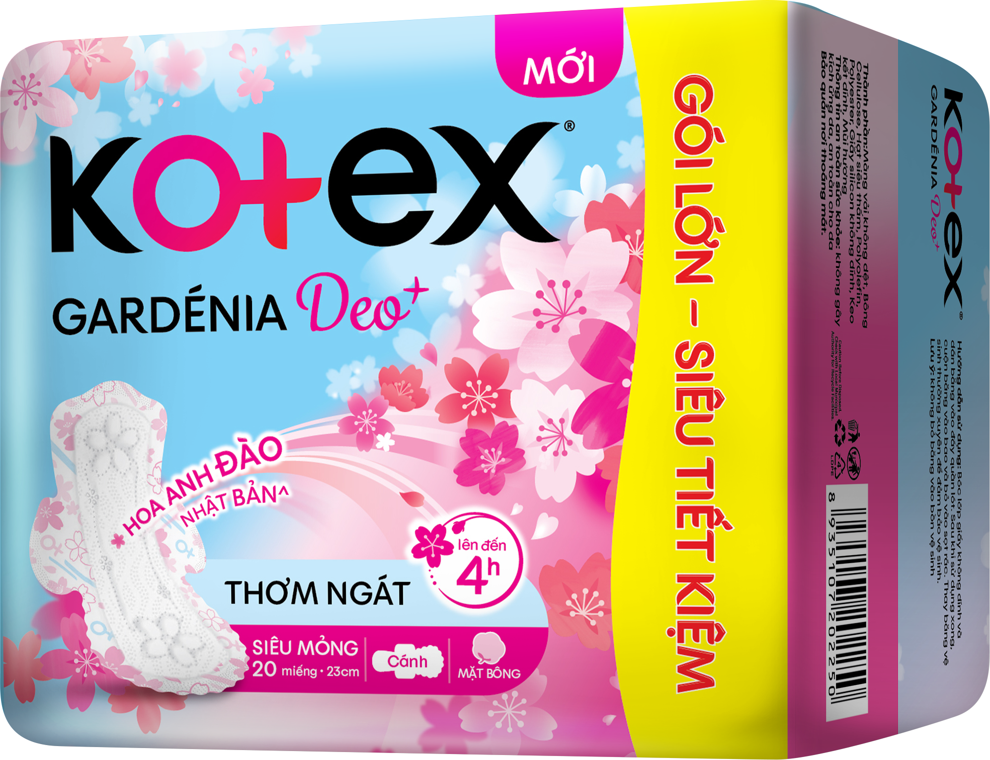 Trong suốt , các vấn đề như tràn băng và mùi hôi đã tạo ra sự bất tiện và tự ti cho hầu hết bạn gái. Nhằm giải quyết tình trạng này, Kotex đã phát triển dòng sản phẩm mới Kotex Gardenia Deo+ Hoa Anh Đào Nhật Bản, với tính năng đặc biệt là khả năng siêu khử mùi và thấm hút tối đa, giúp phái nữ tự tin và thoải mái hơn trong suốt thời gian kinh nguyệt.