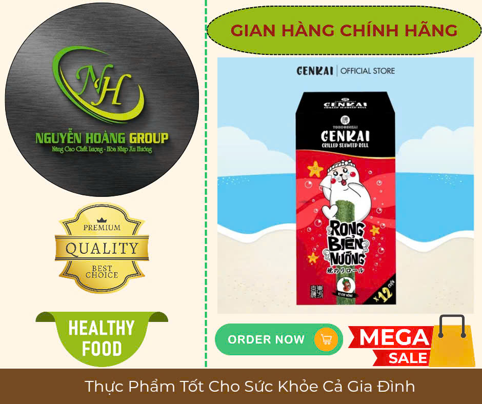 Tên sản phẩm: RONG BIỂN NƯỚNG CUỘN Có 2 Vị : Tự Nhiên & Vị Cay NÓNG Thành phần: Rong biển 68%, dầu ngô 26.7%, dầu mè 4.3%, muối biển 1% Lá Rong biển có
