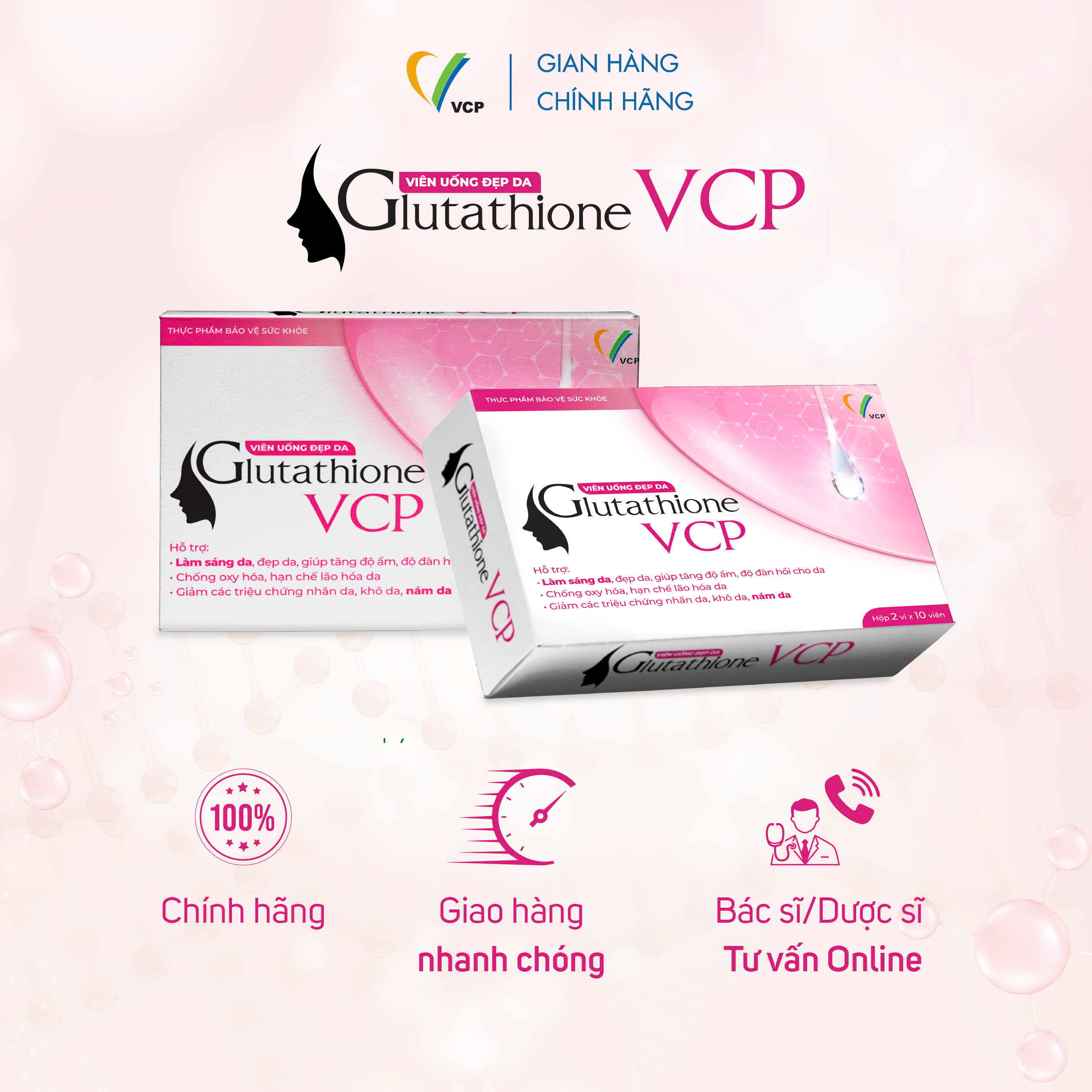 ✨[Combo 2 hộp] TPBVSK Viên uống đẹp da Glutathione VCP - Hỗ trợ làm sáng da, giảm các triệu chứng nhăn da, khô da, nám da - Hộp 20 viên