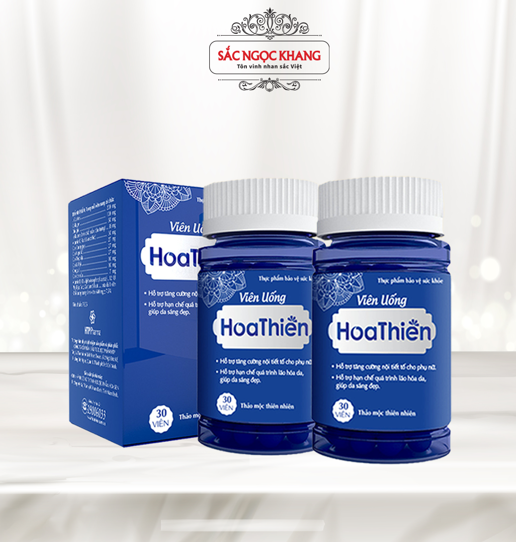 Mua tại TiktokViên uống Hoa Thiên Dựa trên sự phối hợp từ tinh hoa Y học cổ truyền, với các vị dược liệu quý như tinh chất mầm đậu tương, collagen, quy râu, ngưu tất, thục địa, ích mẫ Viên uống Hoa Thiên giúp bổ sung nội tiết, hỗ trợ 3 vấn đề: tăng cường sinh lý nữ, chống mất ngủ và làm đẹp da. Xuất xứ : Việt Nam Xuất xứ thương hiệu : Sắc Ngọc Khang - Hoa Thiên ( Việt Nam )
