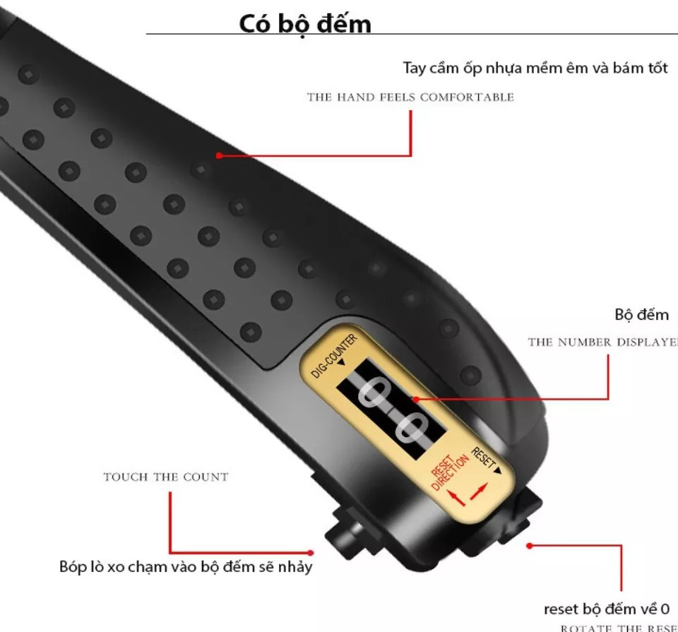 - Kết cấu lõi bằng thép, phần ngoài của tay cầm bọc nhựa cao cấp chống trơn, thấm mồ hôi và lò xo có độ đàn hồi lớn.