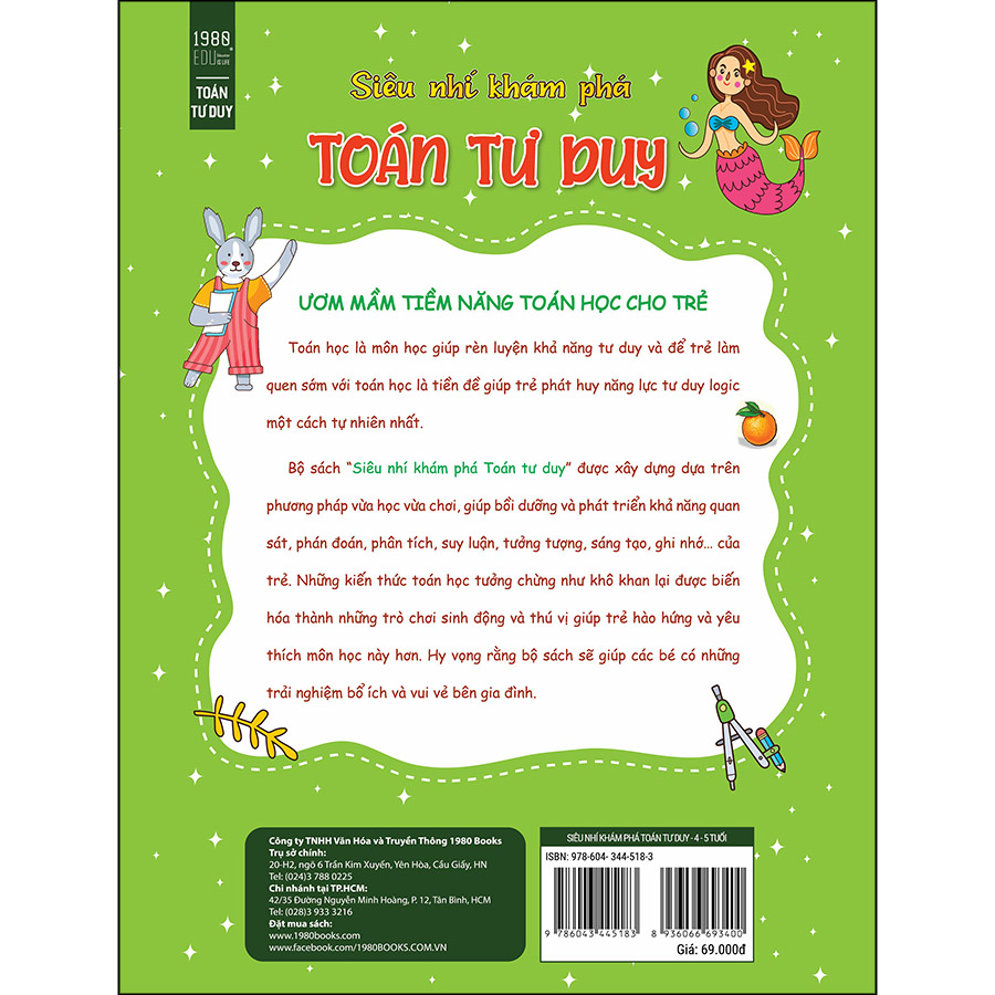 Bộ sách “Siêu nhí khám phá Toán tư duy” được xây dựng dưa trên phương pháp vừa học vừa chơi, giúp bồi dưỡng và phát triển khả năng quan sát, phán đoán, phân tích, suy luận, tưởng tượng, sáng tạo, ghi nhớ, của trẻ.