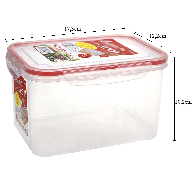 • Kích thước:  Hộp chữ nhật 1300ml: 17,3 x 12,2 x 10,2Hcm