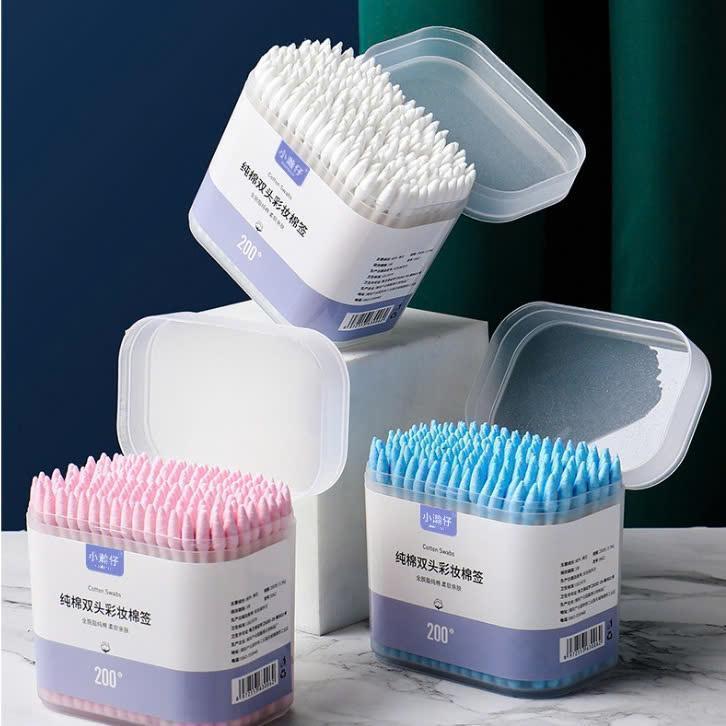 ✨Combo 3 hộp Tăm bông ngoáy tai, trang điểm hai đầu hộp 200 que bông dùng một lần thiết kế đa chức năng tiện dụng, mềm dẻo Cosmetic Mỹ Phẩm Nữ
