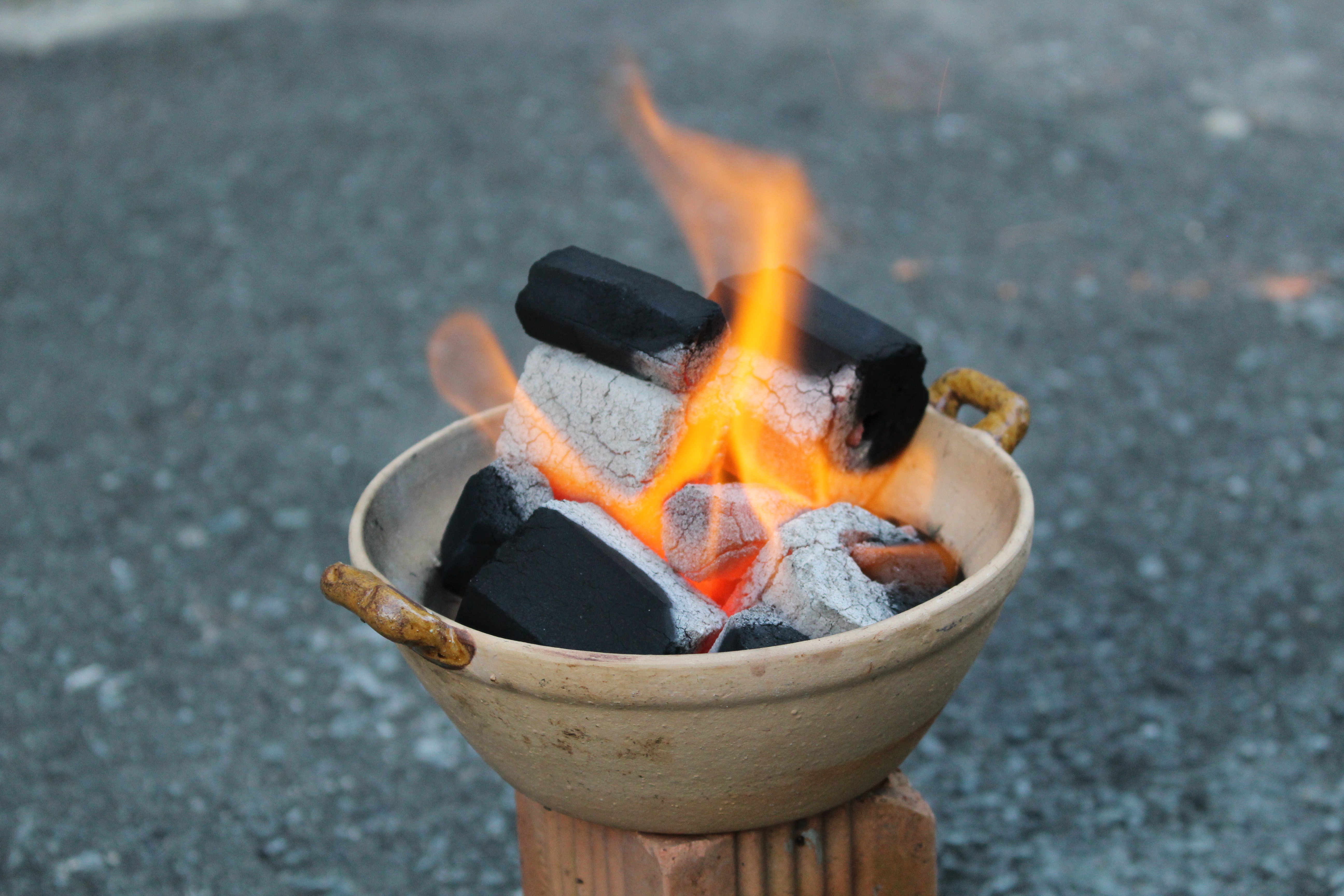Dùng bật lửa hoặc que diêm đốt nhẹ một đầu viên than.