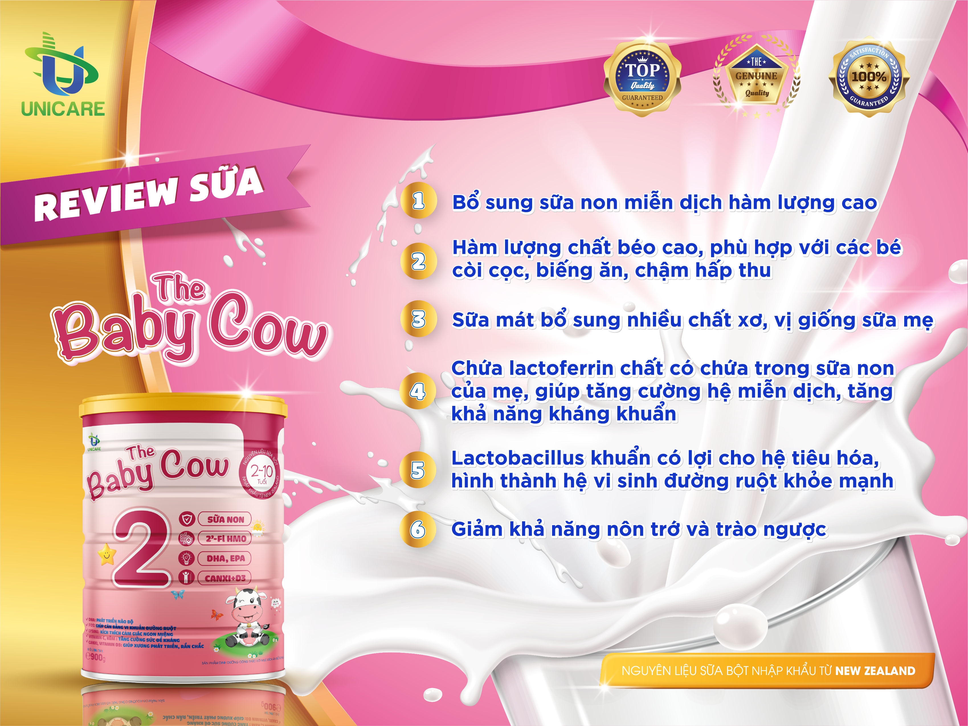 Sữa non: Bảo vệ hệ miễn dịch của con, bổ sung lượng kháng thể hàng đầu chống viêm nhiễm đường tiêu hóa.