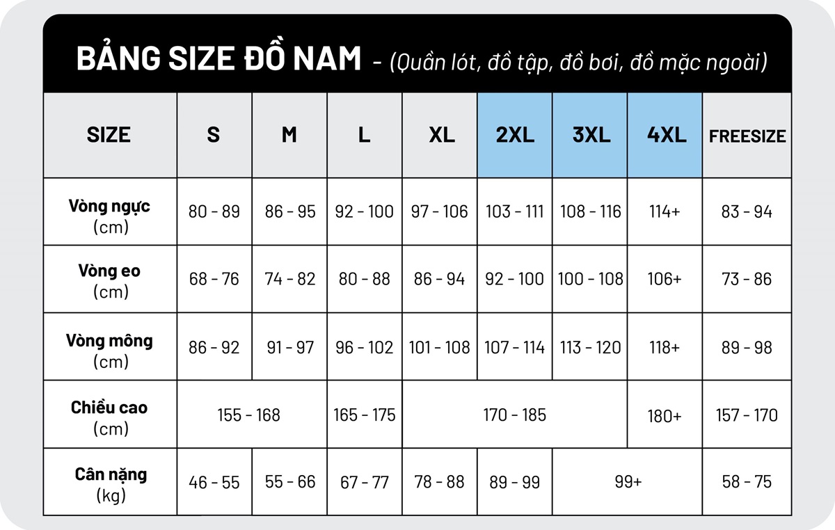 - Kích cỡ: S, M, L, XL, 2XL